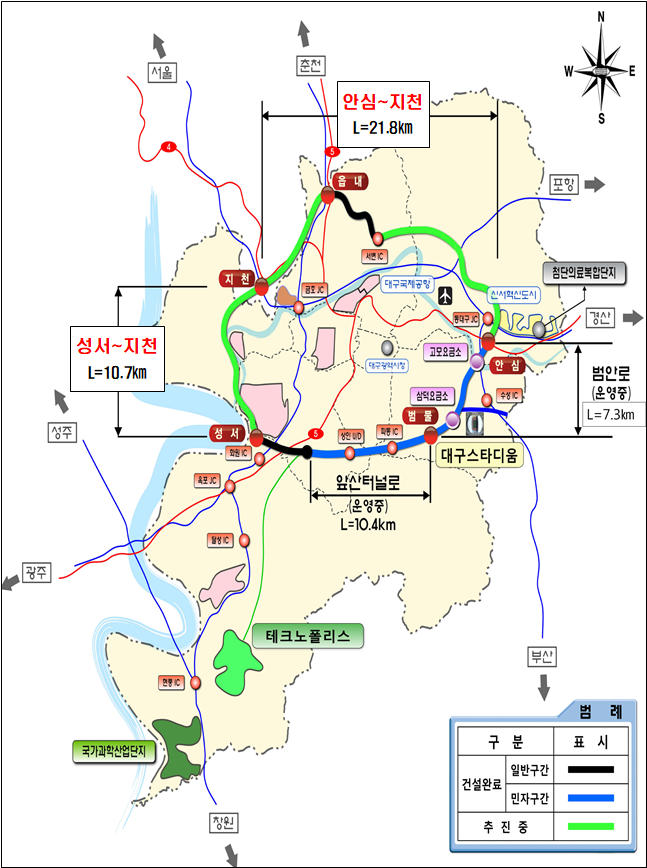 도심통과 교통량 분산으로 도심 혼잡 해소 및 대구·경북 광역경제권 활성화가 기대된다.