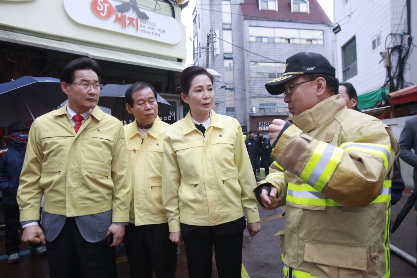 대구시의회 배지숙 의장과 장상수 부의장, 김규학 의원(자유한국당 대구시의회 원내대표) 등은 19일 대보빌딩 사우나 화재현장을 방문해 소방관계자로부터 화재수습 상황을 보고받고 관계자들의 노고를 격려했다.