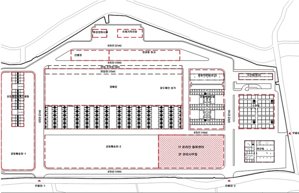 주요 시설로는 일방향 물류 동선, 공동선별장, 청과동 자동창고, 통합 경매장, 공동배송장, 온라인 물류센터 등이 포함된다. 이를 통해 물류 효율성을 개선하고, 스마트 물류체계를 도입해 최첨단 도매시장으로 발돋움할 계획이다.