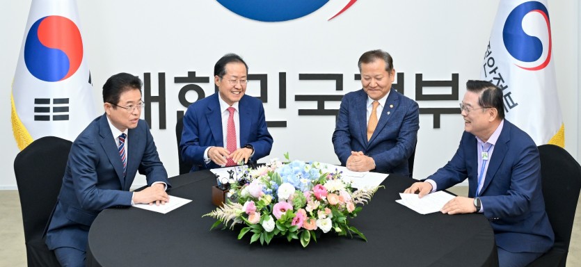 정부서울청사에서 4일 이상민 행정안전부장관, 우동기 지방시대위원장, 홍준표 대구광역시장, 이철우 경북도지사는 대구·경북 통합 추진방안을 논의했다고 밝혔다.