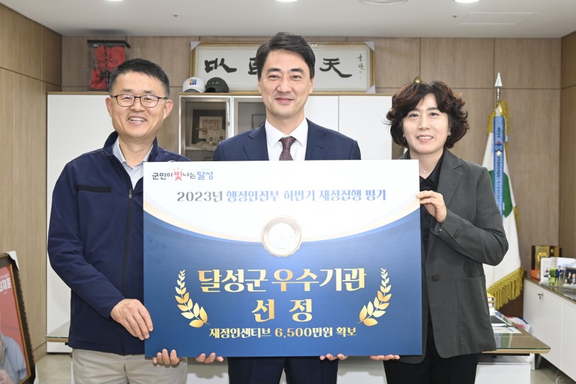 달성군, 2023년 하반기 재정집행 ‘우수’기관 선정