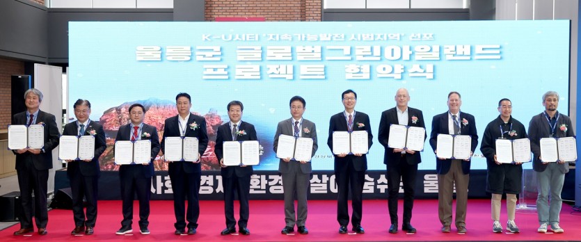 도는 25일 한동대학교 창조도서관에서 울릉군과 한동대학교, 울릉고등학교 및 7개 기업 관계자와 함께 울릉군을 K-U시티‘지속 가능 발전 시범지역’으로 선포하고, ‘울릉 글로벌 그린 아일랜드 프로젝트 업무협약’을 체결했다고 밝혔다.