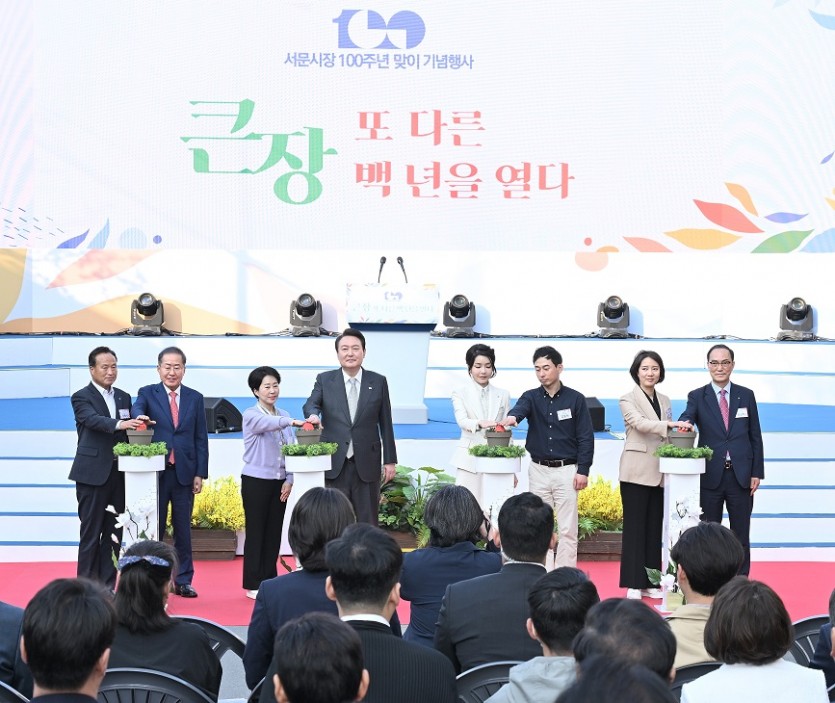 한편 윤 대통령은 축사에 앞서 이영 중소벤처기업부 장관으로부터 ‘백년시장 육성 프로젝트’ 등 지속 가능한 전통시장을 만들기 위한 정책 추진 방향을 보고받고, 적극적으로 추진할 것을 주문했다.