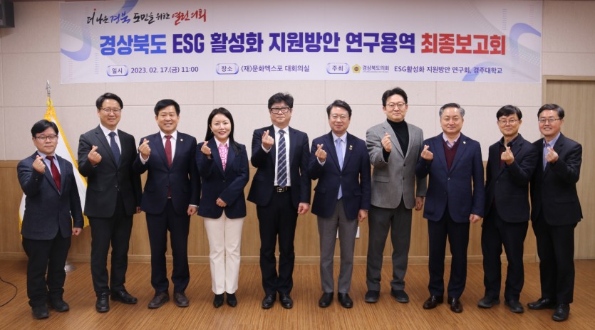 경북도의회 '경북도 ESG활성화 지원방안연구회'는 17일 (재)문화엑스포 대회의실에서 '경북도 ESG활성화 지원방안 연구용역' 최종보고회를 개최했다고 밝혔다.