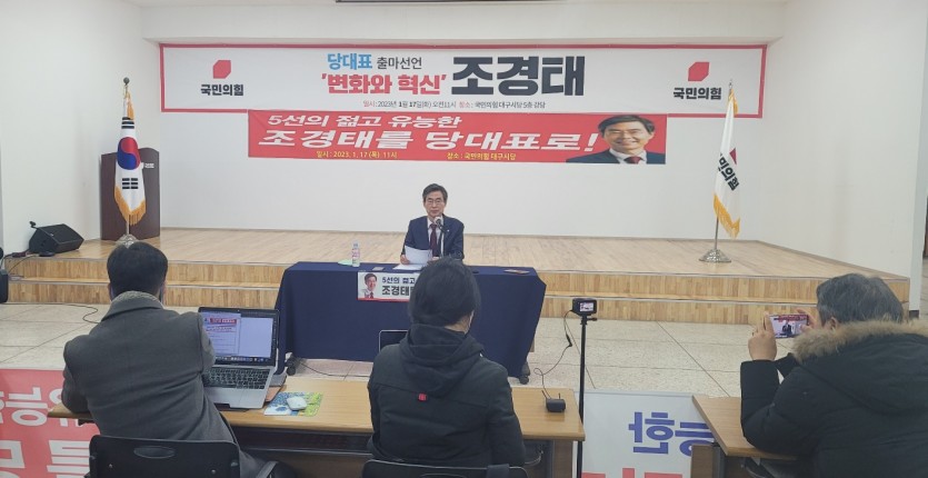 국민의힘 조경태 의원이 17일 국민의힘 대구시당 5층에서 기자회견을 통해 오는 전당대회를 앞두고 당대표 후보 적임자임을 호소했다.