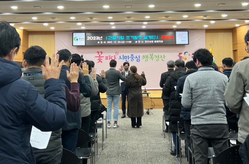 경산시는 23일 시 본청, 사업소, 읍면동의 건설사업 관계자 140여 명이 참석한 가운데 "2023년 건설사업 조기발주 설계단 출범식"을 개최했다고 밝혔다.