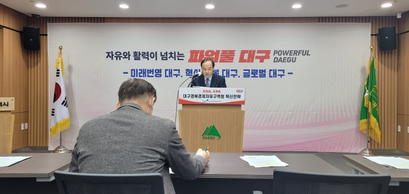 대구경북경제자유구역청 최삼룡 청장은 대구시 기자브리핑을 통해 대구미래 50년을 선도적으로 뒷받침 하기위한 그동안의 성과를 바탕으로 "5대 혁신전략"을 발표했다.